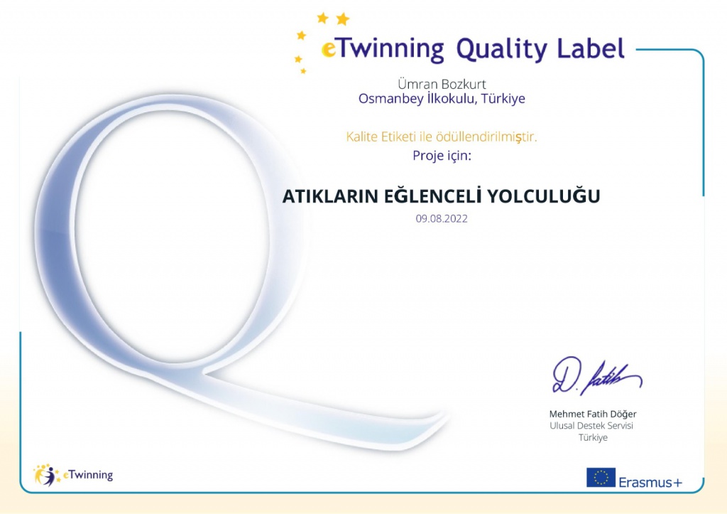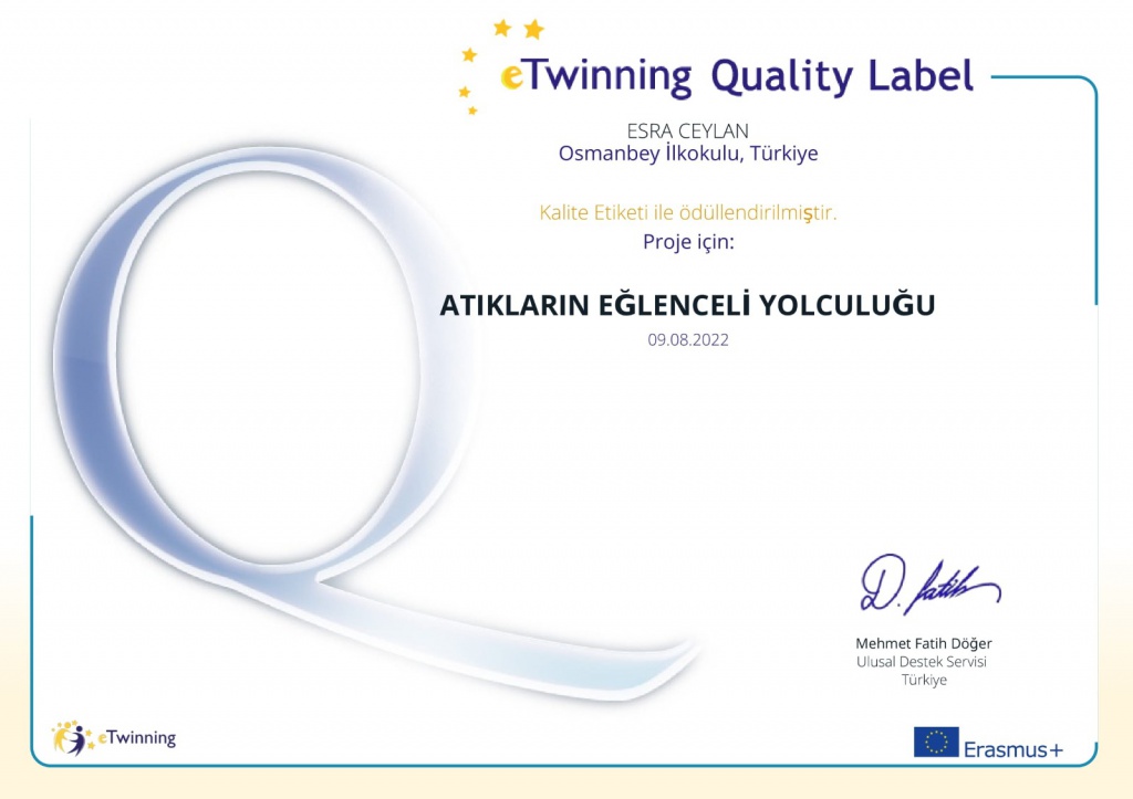 Okulumuzda yürütülen Projelere ait sertifikalarımız.